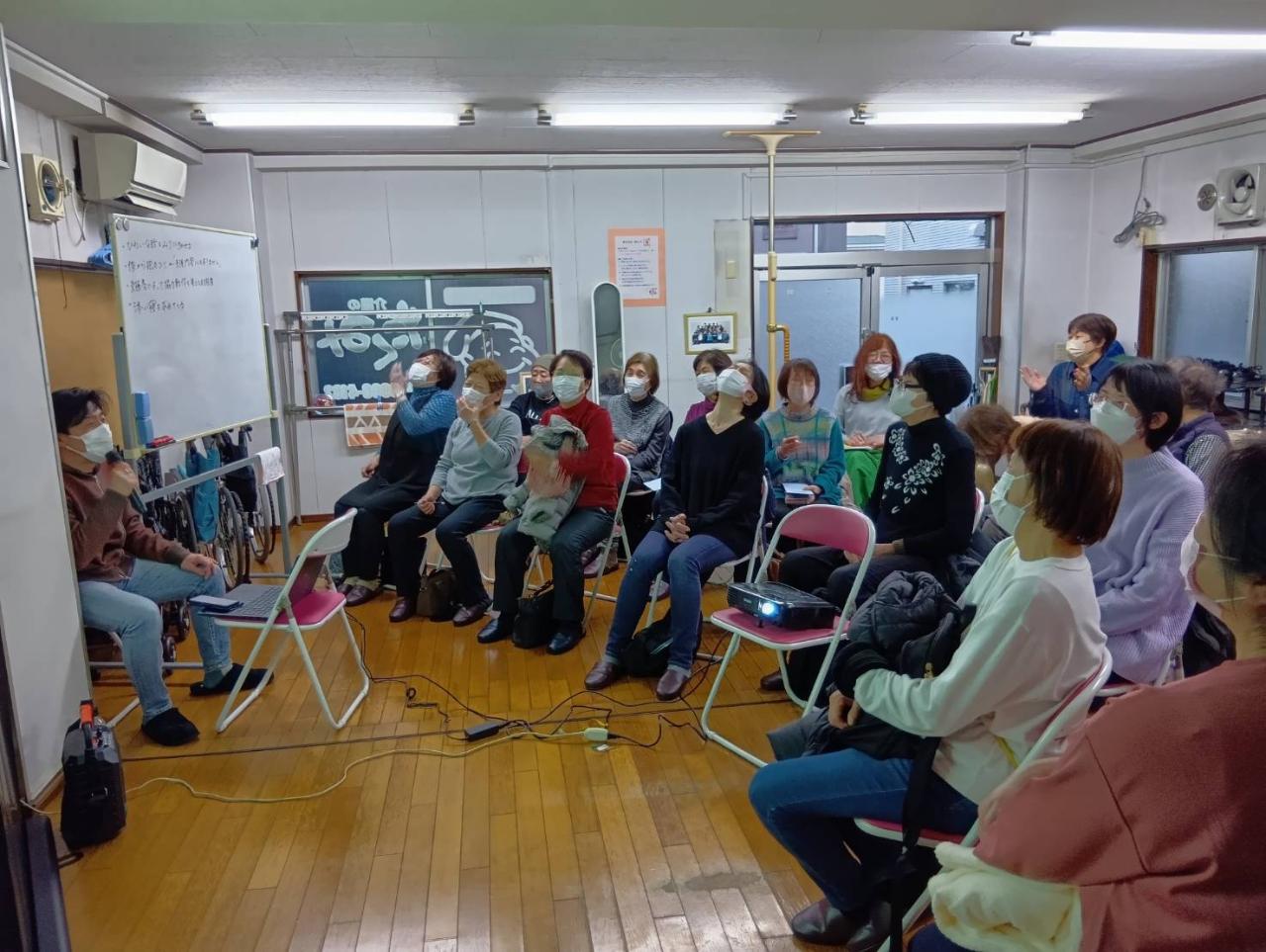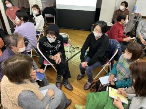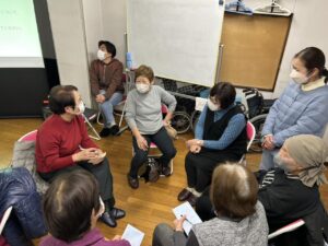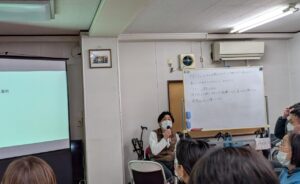 その後、グループに分かれて、実際の介護現場で感じた、経験したハラスメントについて話し合いました。中には、三つ指をたてて挨拶を強要されたり、ご主人の介護に対して嫉妬した奥さんからの嫌がらせなど、様々な事例が出てきました。