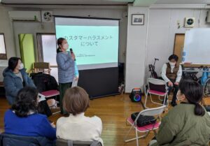 どうしても、現場では1人で人と関わることが基本の私たちの仕事。ハラスメントに対しては、スタッフ1人1人ではなく、情報を共有して、会社として毅然と対応していく必要があることをあらためて学習する機会になりました。事前の契約等書類にハラスメント対策をしっかり盛り込み、対応していける事業所にしていきます。